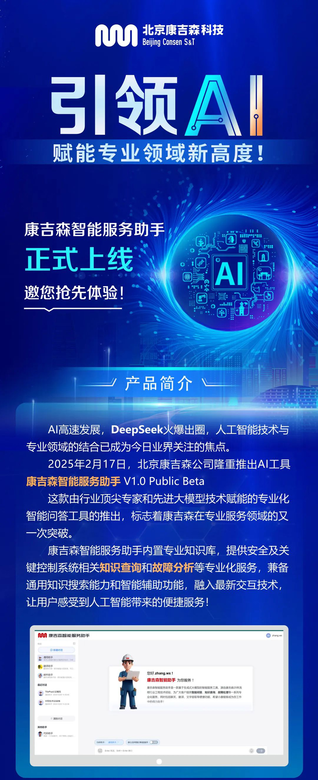 康吉森AI智能服務(wù)助手 V1.0 Public Beta重磅上線!